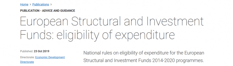 The revised National Rules on eligibility of expenditure were published on the Scottish Government’s European Structural Funds webpage on 23 September 2019.