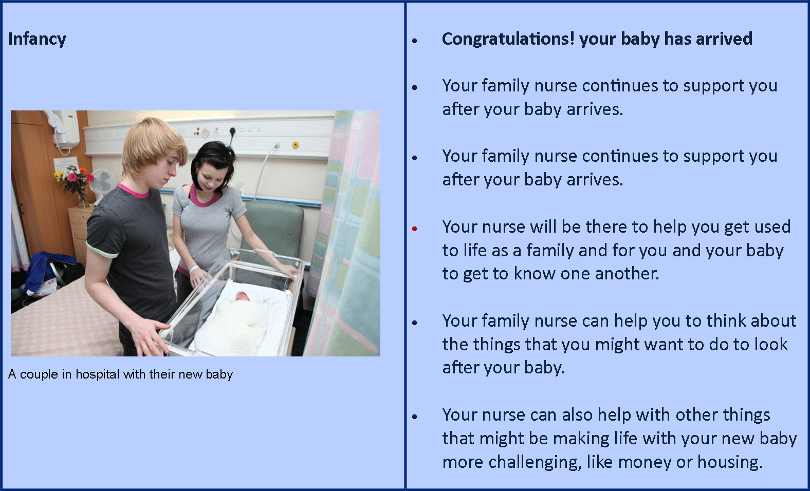 Family Nurses have had special training to deliver this service. They have worked in other nursing services before becoming a family nurse. The family nurse is there from the time you are pregnant until your baby is 2 years old; to help you to be the best mum you can be. Most women see the same family nurse for the whole time they are on the programme.