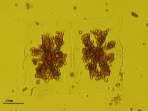 Cells belonging to the genus Pseudo-nitzschia cannot be identified to species level using the light microscope. They are divided into two size categories (< and > 3µm diameter). Thin (<3µm) Pseudo-nitzschia cells comprise a large part of the spring bloom diatom community in Scottish waters. Species within the fat (>3µm) Pseudo-nitzschia category in Scottish waters ( P. australis and P. seriata) have been confirmed as producers of the shellfish toxin, domoic acid. They become more abundant in the late summer and autumn.