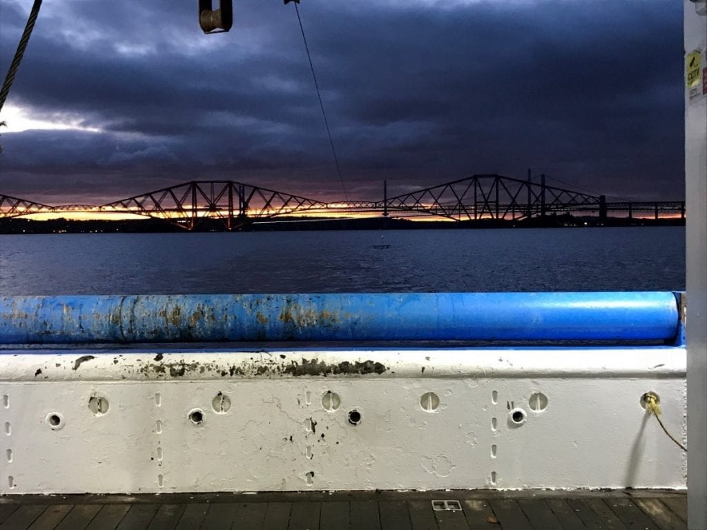 On 28th November Alba na Mara departed at 0700 from Leith to sail up the Forth Estuary to complete our first objective which was to fish and collect sediment samples at Tancred Bank. We sailed under all the bridges with wonderful views as we passed.