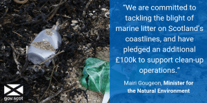 Ms Gougeon helped fight the threat of marine pollution on Scotland’s shore, taking part in a beach clean-up at Ferryden. We also announced our investment of £100,000 in an effort to tackle marine litter and help support clean-up operations on Scotland’s littered coastal areas. Read more on our news release.
