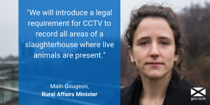 Addressing animal welfare issues this week at Parliament, Rural Affairs Minister Mairi Gougeon announced that CCTV will now become a legal requirement in slaughterhouses across Scotland.