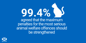 - 99.4% of respondents agree that the maximum penalties for the most serious animal welfare offences should be strengthened