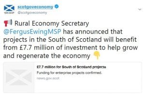 In a clear statement of our intent to grow and regenerate the economy in the South of Scotland, £7.7 million of Scottish Government funding was awarded to The South of Scotland Economic Partnership (SOSEP) to support projects across Dumfries and Galloway and the Scottish Borders, to provide careers opportunities and build community resilience. For more click here.