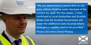 Finance Secretary Derek Mackay announced additional Scottish Government funding will be made available to Local Authorities and Scottish Water to ensure that emergency supplies of drinking water are provided to communities where their private water supplies have run dry.