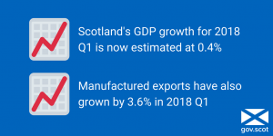 “Figures for the first quarter of 2018 also show that manufactured exports, which make up around half of the total value of exports from Scotland to the rest of the world, have grown by 3.6% reflecting the strength of international exports to the future of the Scottish Economy.”