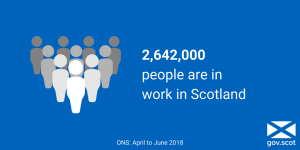 Scotland’s employment rate has increased over the quarter, with 2,642,000 people now in work in Scotland. Our unemployment rate fell over the quarter to 4.2%. On female and youth employment, we continue to outperform the UK with an employment rate of 71.6% for women, higher than the UK rate of 71.0%, and a youth employment rate of 56.2%, higher than the UK rate of 53.8%.
