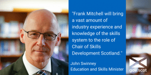 This week Deputy First Minister John Swinney announced the appointment of Frank Mitchell as Chair of the Skills Development Scotland Board.