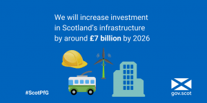 The PFG has a strong emphasis on boosting our economy. We will increase investment in Scotland’s infrastructure so it is £1.5 billion per year more by the end of the next Parliament than in 2019-20. This increased investment – the most ambitious long term level of infrastructure spend that Scotland has ever seen – will drive connectivity, create jobs and deliver a long-term boost to productivity.