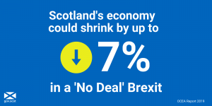 And the analysis published last week by my Chief Economic Adviser about the projected impact of a No Deal Brexit shows the scale of likely damage to the economy is profound. A potential shrinking of our economy by up to 7% and a drop in exports by up to 20%. That’s why a No Deal Brexit must be off the table.
