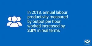 - In 2018 Quarter 4, labour productivity in Scotland, measured by output per hour worked, has increased by 2.3% in real terms (inflation adjusted) compared to the same quarter last year