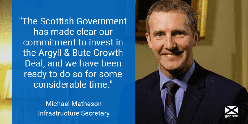 Infrastructure Secretary Michael Matheson said: “The UK Government is simply re-announcing money that has already been committed. “The Scottish Government has made clear our commitment to invest in the Argyll & Bute Growth Deal, and we have been ready to do so for some considerable time. “On the basis of our 50:50 approach to funding...