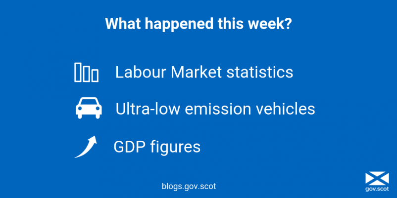 Labour Market Statistics Scotland’s unemployment rate fell again, to 3.3%, lower than the UK for the ninth month in a row. Statistics out this week also showed that Scotland’s employment rate rose to 75.9%, the highest on record. Read more about Scotland’s labour market statistics Modern Apprentices The number of apprentices benefitting from work-based learning has...