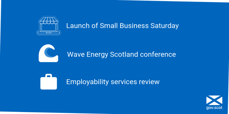 Small Business Saturday Did you know there are over 340,000 small businesses in Scotland? The Scottish Government is investing over £1.25 billion in City Region Deals, looking to benefit small businesses by invigorating local economies. Read more here Review of employability services Minister for Business, Fair Work and Skills Jamie Hepburn announced how the...